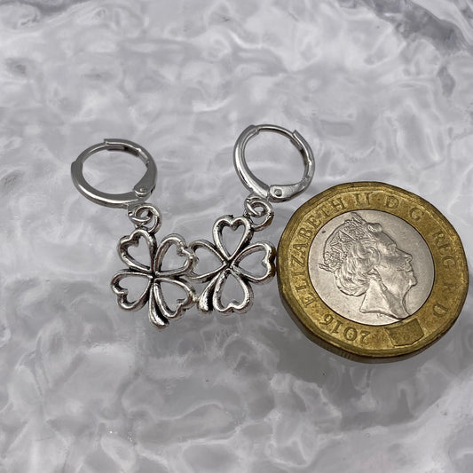 Heart Four Leaf Clover Huggie Hoop Earrings