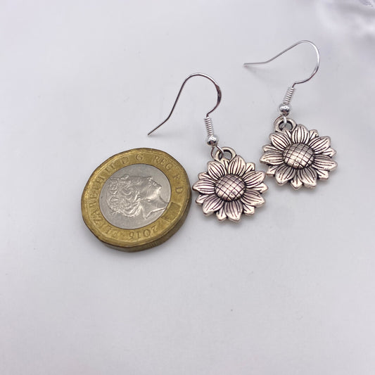 Silver Sunflower Earrings