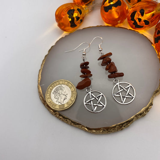 Pentagram Red Crystal Earrings