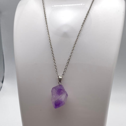 Amethyst Crystal Chunk Pendant Necklace