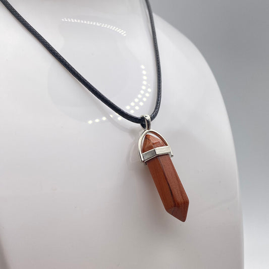 Red Tigers Eye Crystal Pendant Necklace on Black Cord