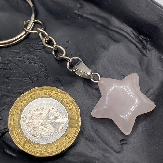 Rose Quartz Star Pendant Keyring
