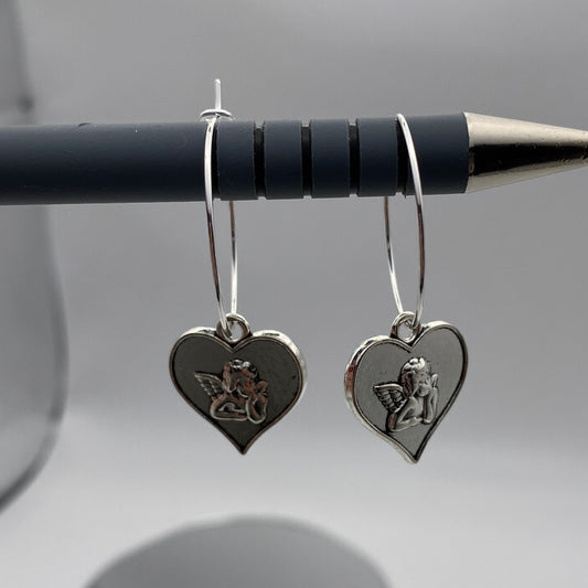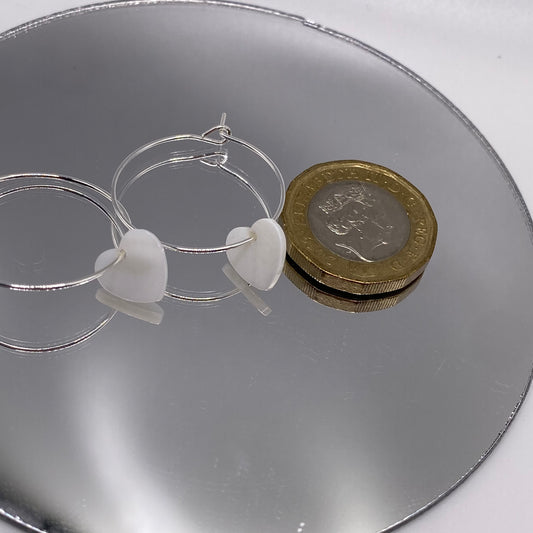 Small Mother of Pearl Shell Heart Hoop Earrings
