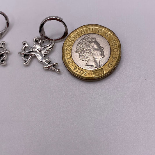 Small Silver Cherub Huggie Hoop Earrings