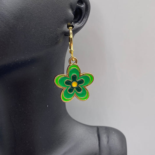 Groovy Green Flower Huggie Hoop Earrings