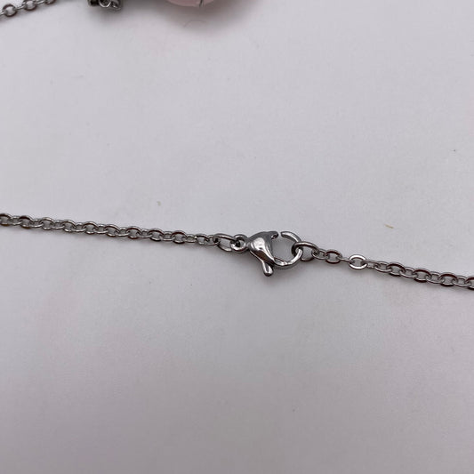 Silver Wire Wrapped Rose Quartz Crystal Heart Pendant Necklace