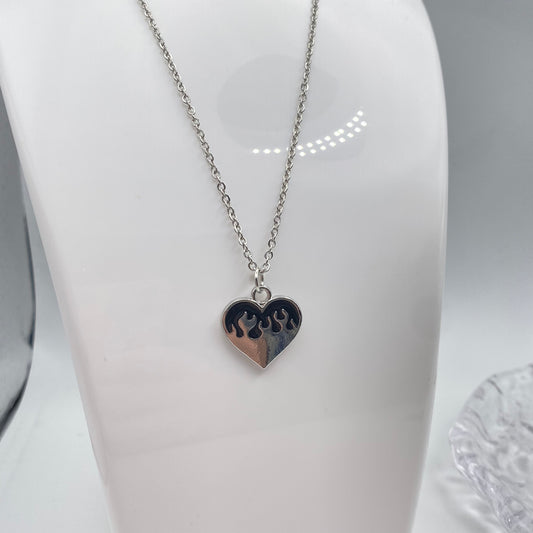 Black Flame Heart Necklace