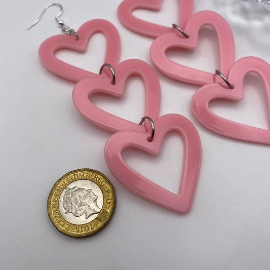 Light Pink Dangly Triple Heart Earrings