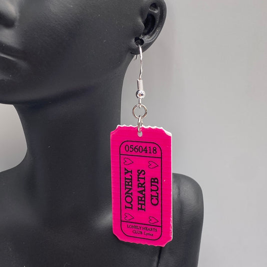 ‘Lonely Hearts Club’ Slogan Ticket Earrings