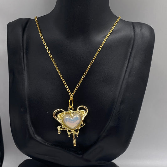 Gold Melting Pearl Heart Necklace