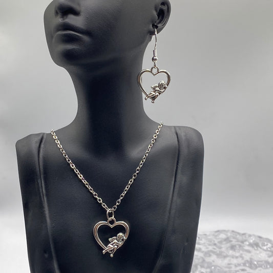 Flying Cherub Heart Necklace