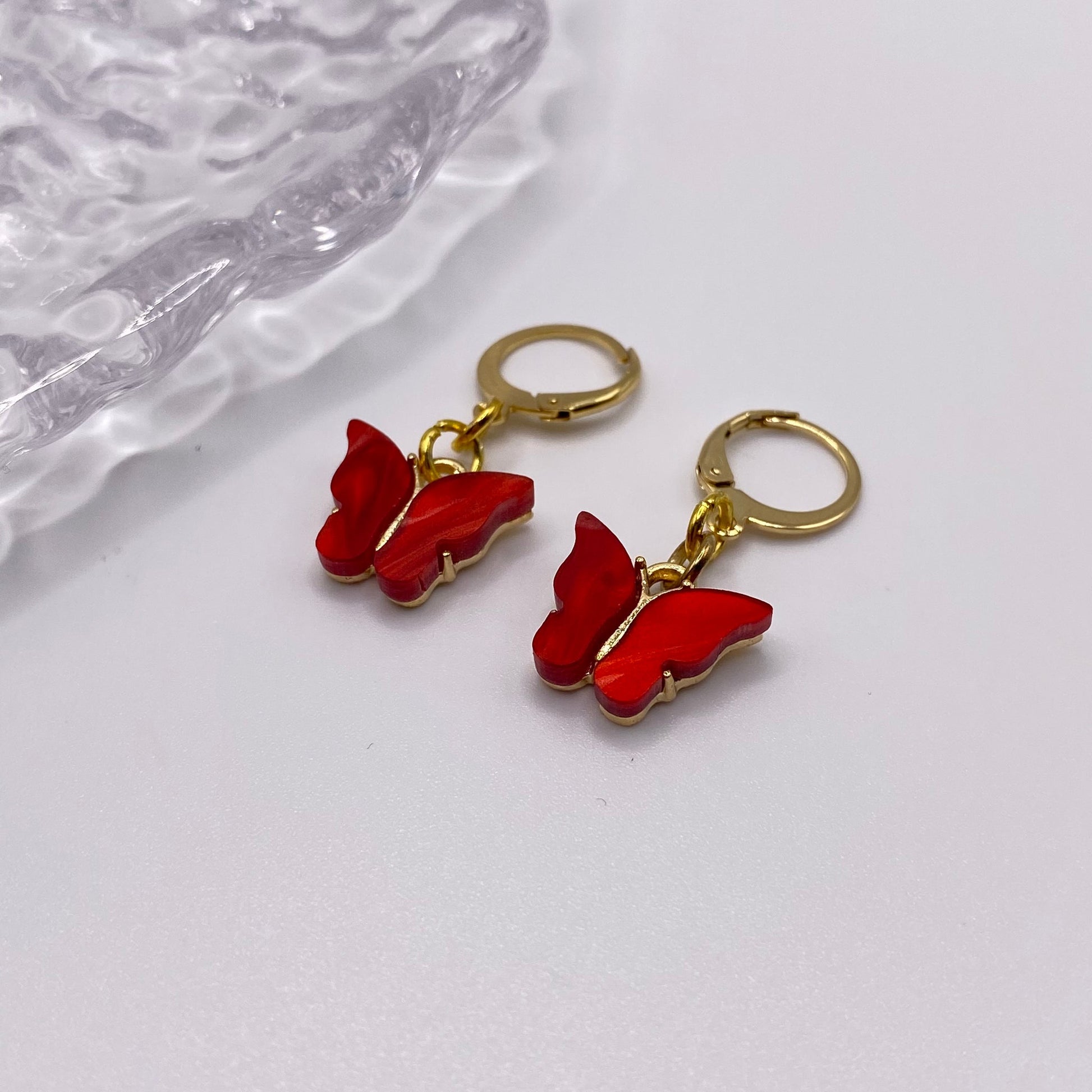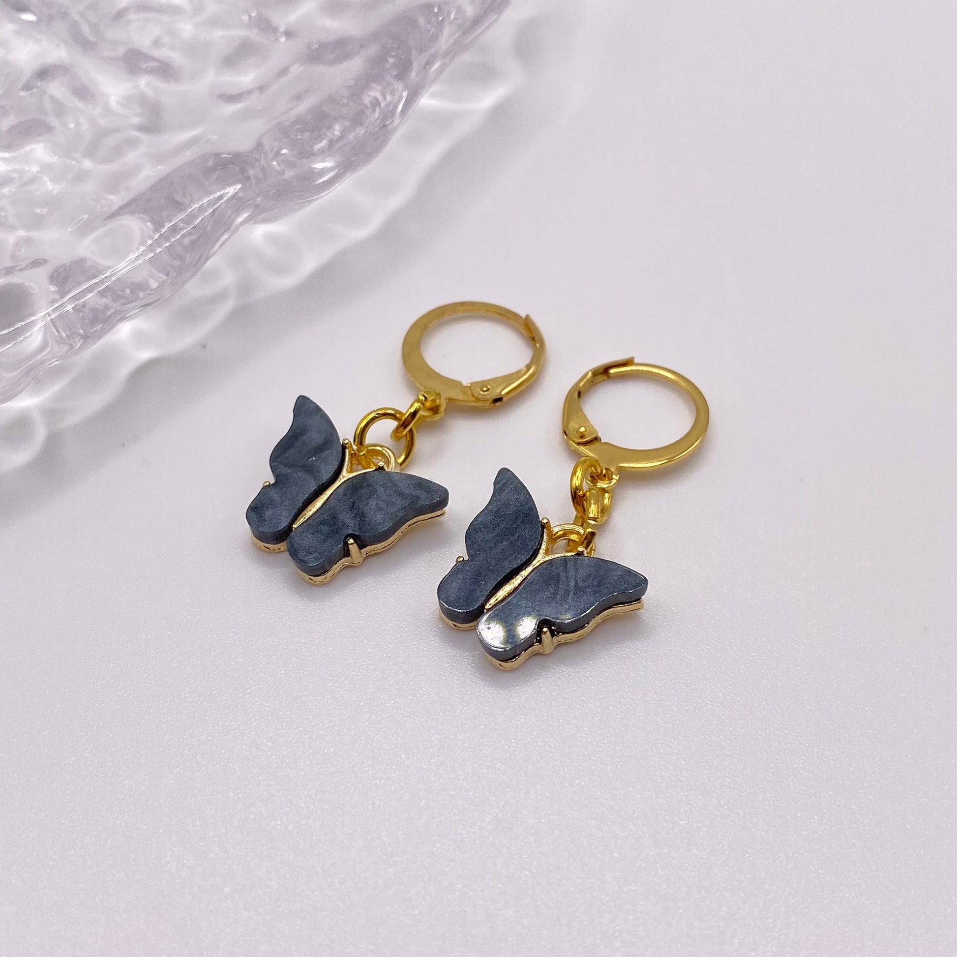 Colourful Butterfly Huggie Hoops Earrings Gold