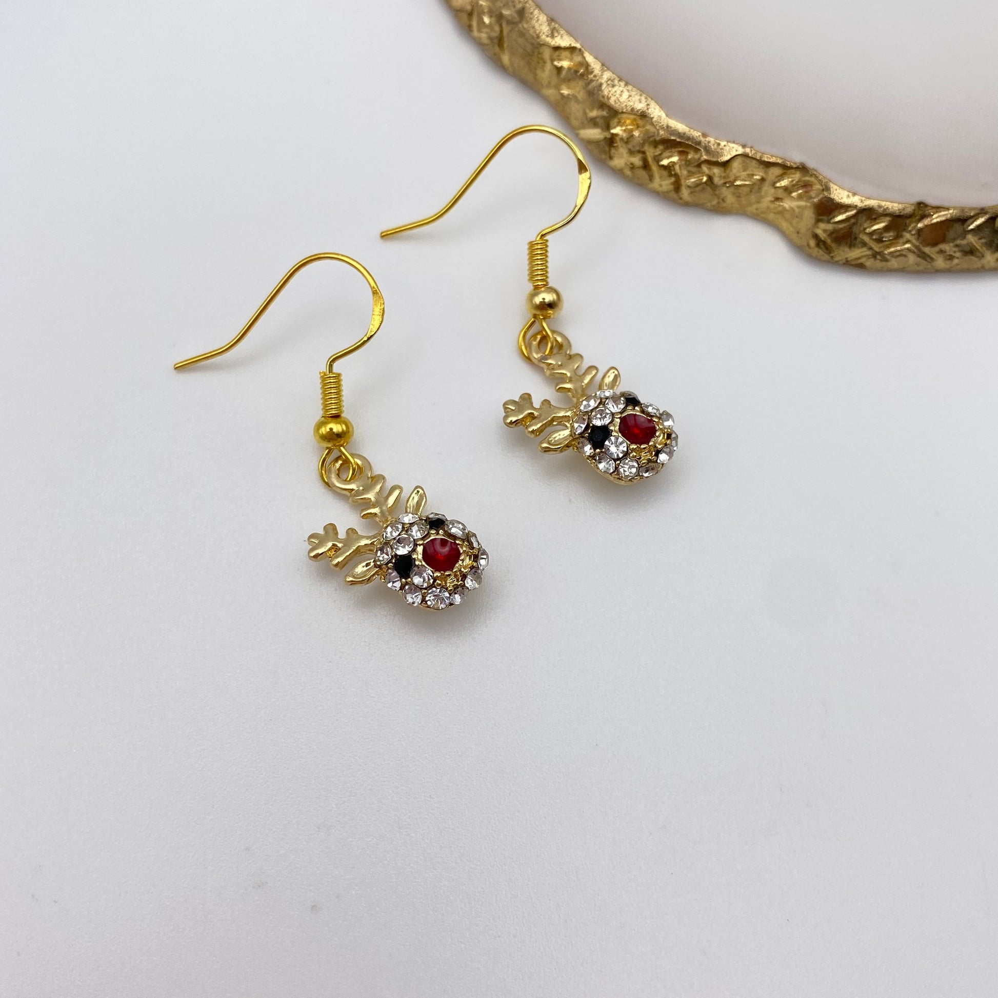 Gold Rudolph Reindeer Face Earrings