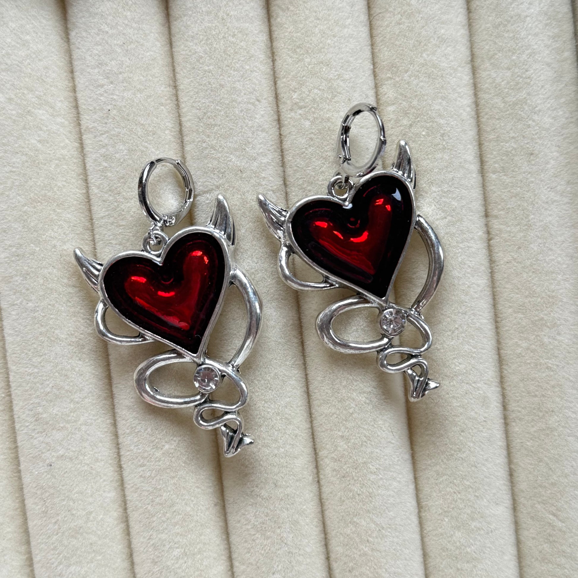 Gothic Red Heart Huggie Hoop Earrings