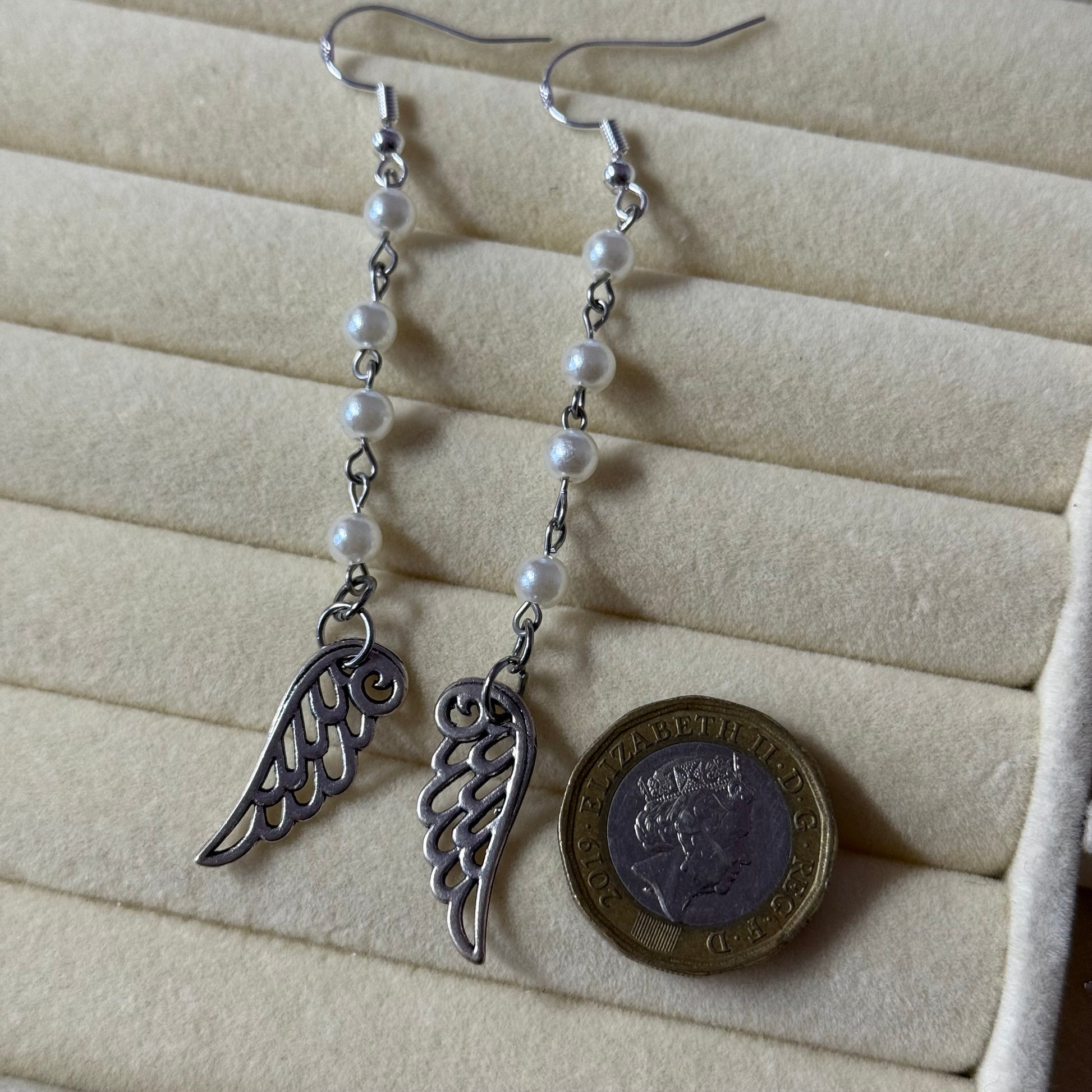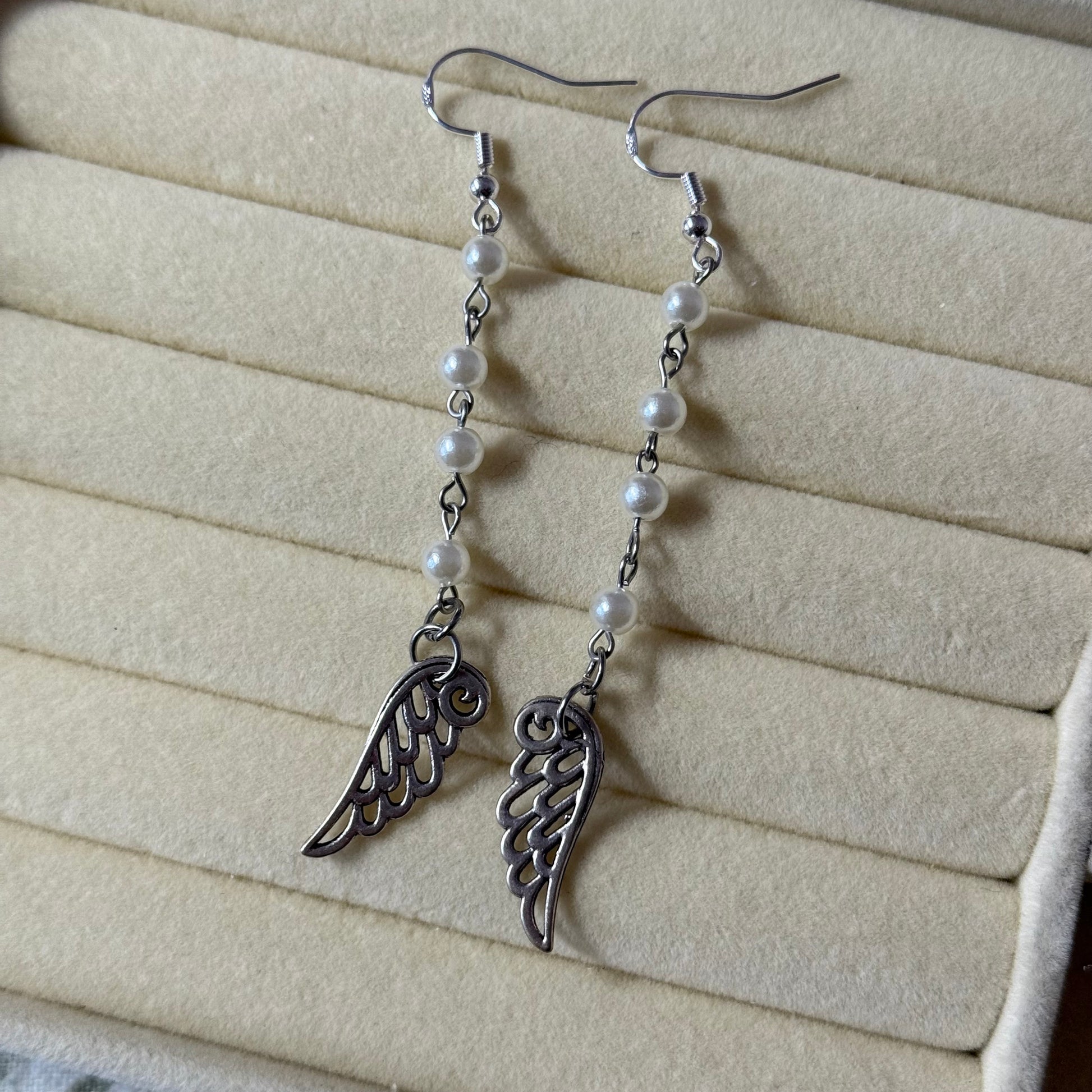 Pearl Drop Dangly Wing Earrings