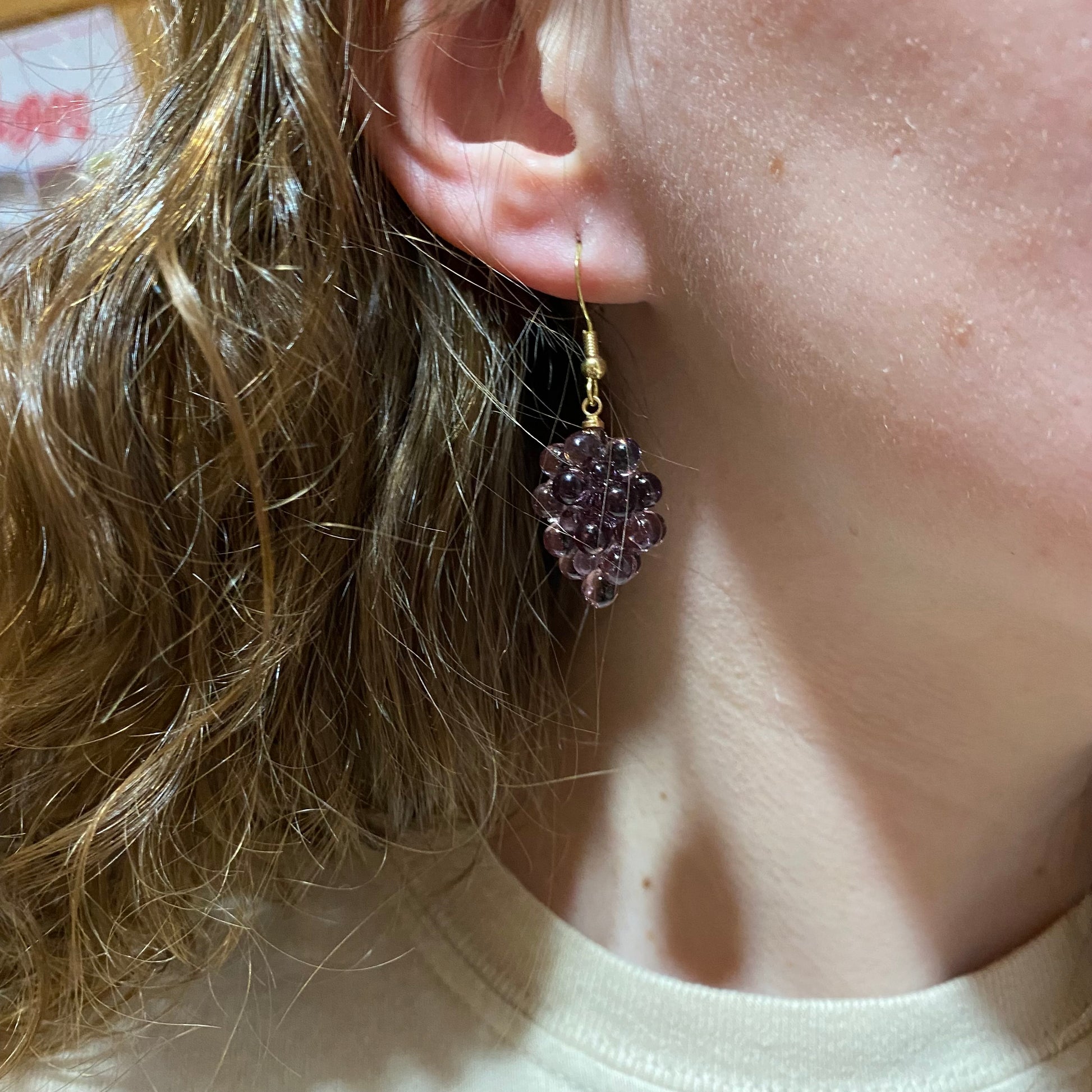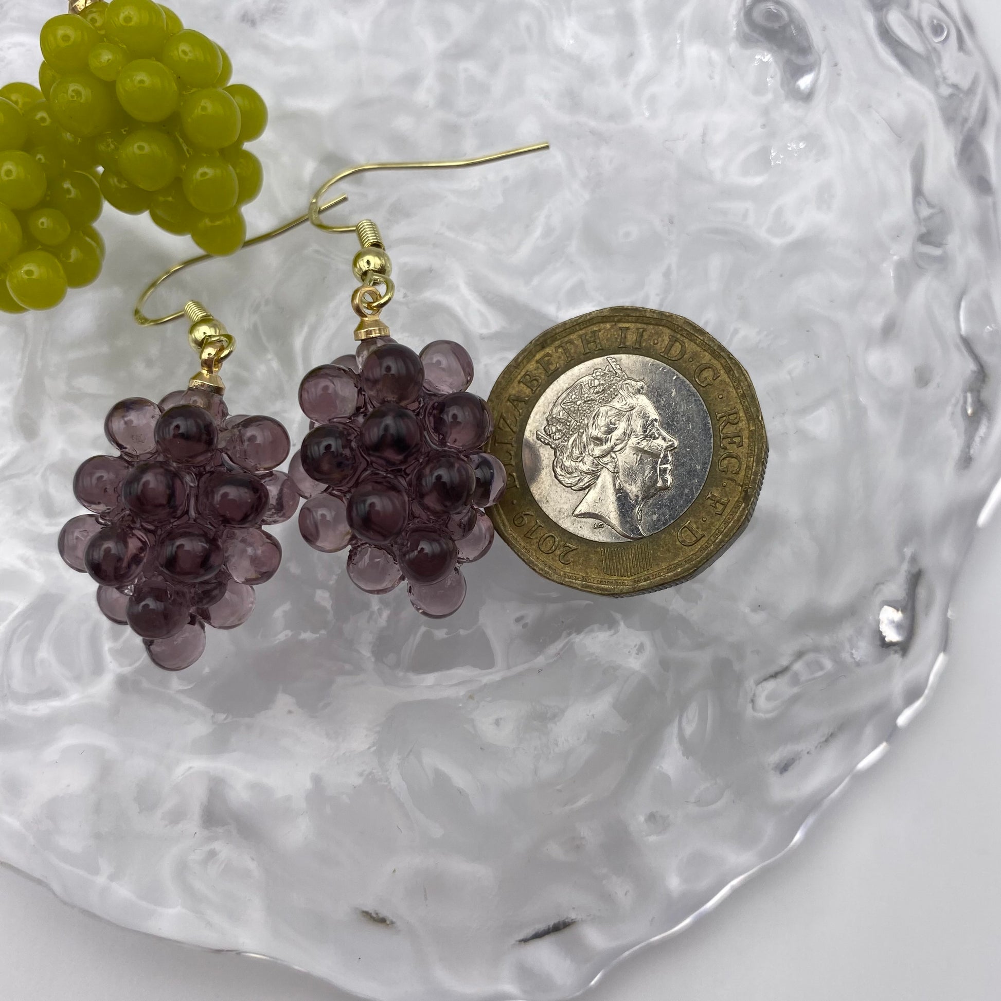 Ana      The purple grape earrings are so cute and affordable ! I changed to silver hoops to match the rest of my jewellery and they are perfect. Thank you so much ! <3