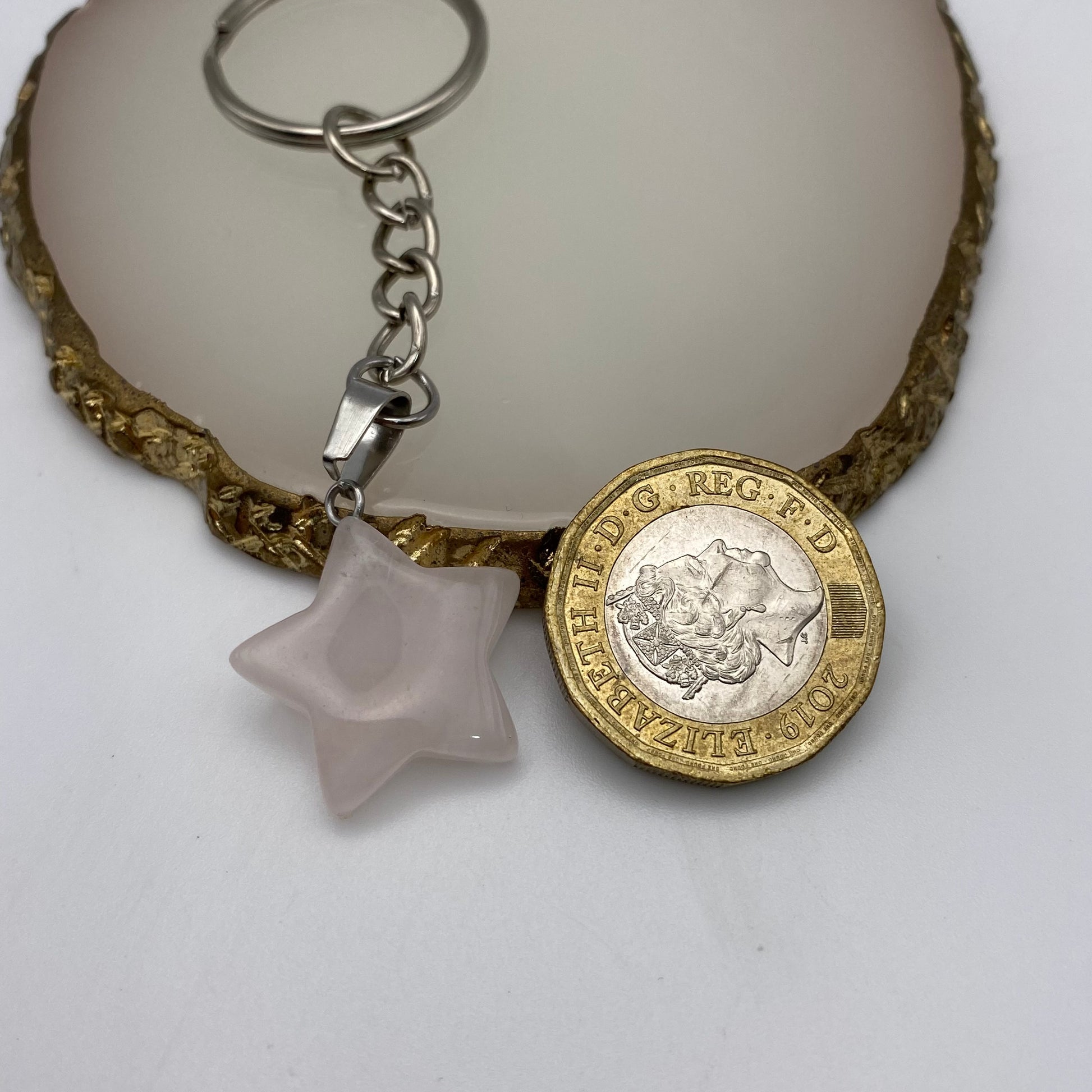 Rose Quartz Star Pendant Keyring