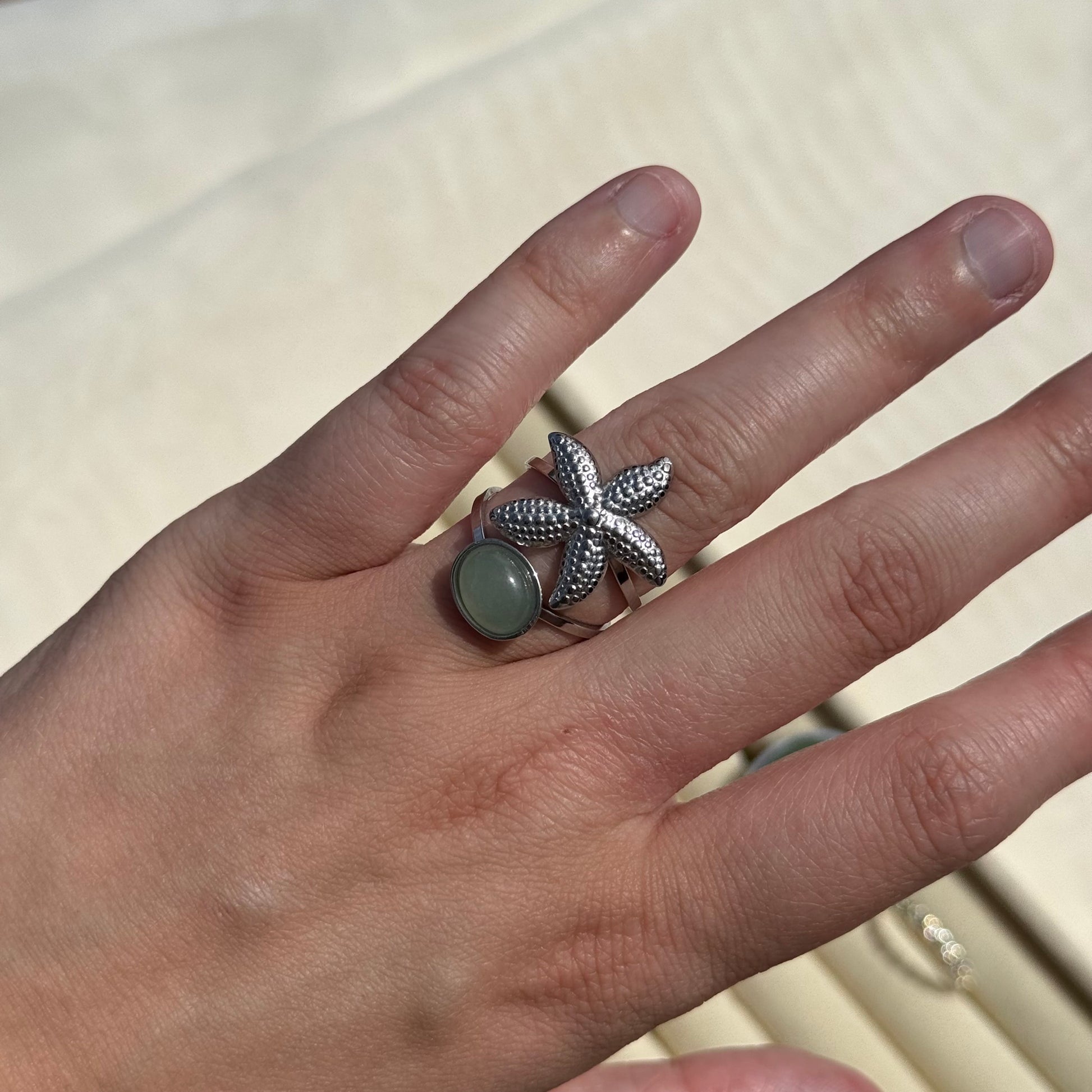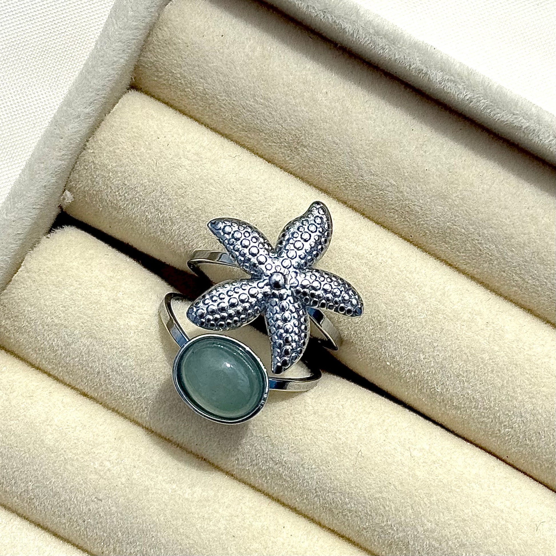 Add a splash of ocean vibes to your style with this beach-themed starfish ring, featuring a charming green aventurine crystal. It’s like wearing a tiny seaside adventure on your finger—perfect for those who want to keep the beach close, even when stuck in the office. Let this ring bring you good luck and a bit of sandy sass wherever you go!